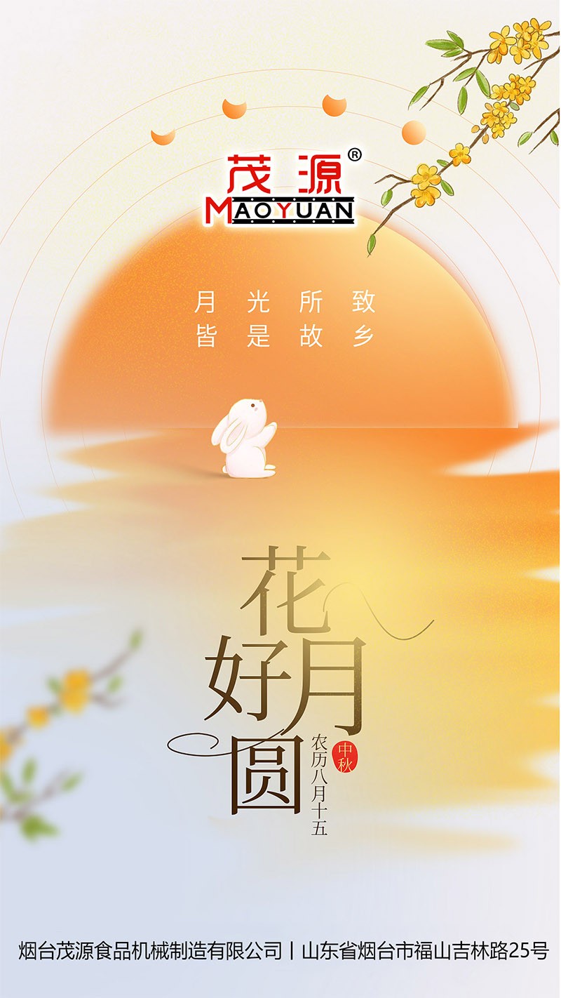 明月寄相思,佳節(jié)慶團(tuán)圓。在這個(gè)溫馨滿溢的中秋佳節(jié),煙臺(tái)茂源食品機(jī)械向您致以最誠(chéng)摯的祝福!